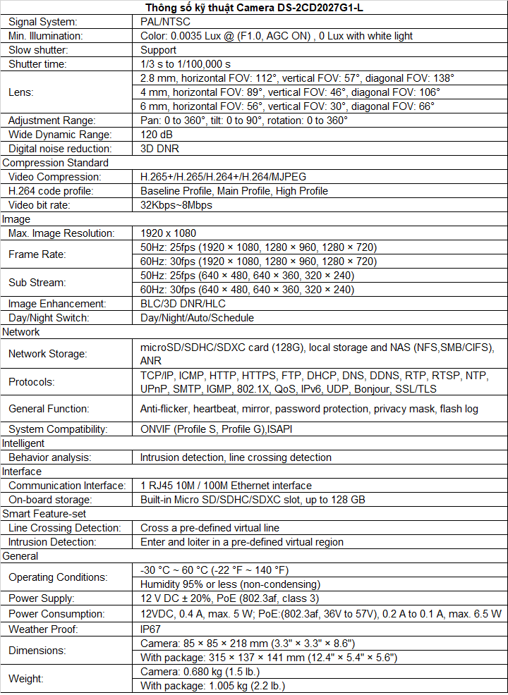 Độ nhạy sáng cực thấp 0.0035 @ F1.0 (1/30 s, AGC ON)