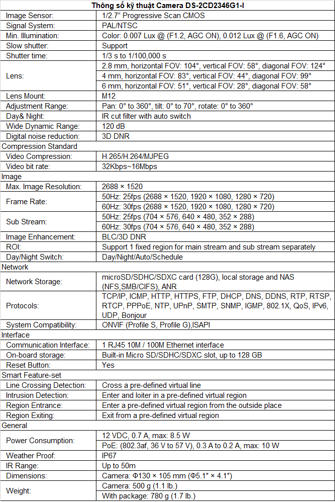 Max. 2688 × 1520 @ 25fps (DS-2CD2346G1-I)