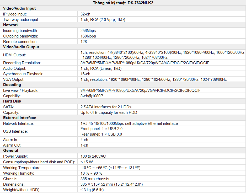 Đầu ghi hình IP xuất hình Ultra HD 4K 32 kênh