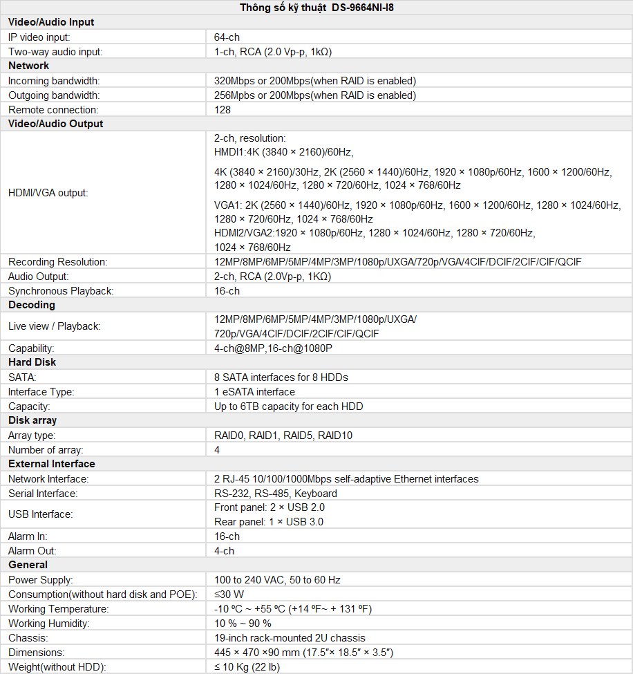Hỗ trợ kết nối 64 camera IP với BW đầu vào lên đến 320 Mbps