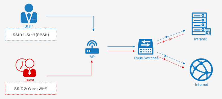 Nhà mạng sẽ cung cấp đường truyền internet cáp quang đến các văn phòng công ty thông qua một bộ định tuyến tích hợp sẵn bộ phát Wifi (Wifi Router), thiết bị này sẽ đảm bảo vùng phủ sóng với các khu vực nhỏ, văn phòng rộng lớn sẽ không thể đảm bảo vùng phủ và chất lượng wifi sẽ không ổn định.